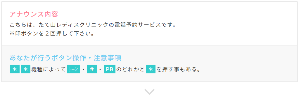 - 予約した後、ご都合で来院できなくなった場合は、必ず予約取消(30#)を行って下さい。